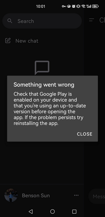 从谷歌应用商店下载ChatGPT应用,安装并登录打开提示以下错误: