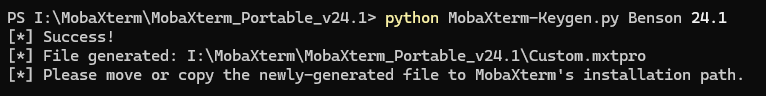 python MobaXterm-Keygen.py 注册用户名 版本号