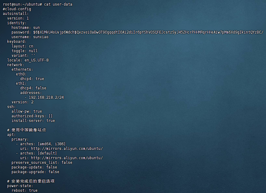 可以参考本地文件:/var/log/installer/autoinstall-user-data